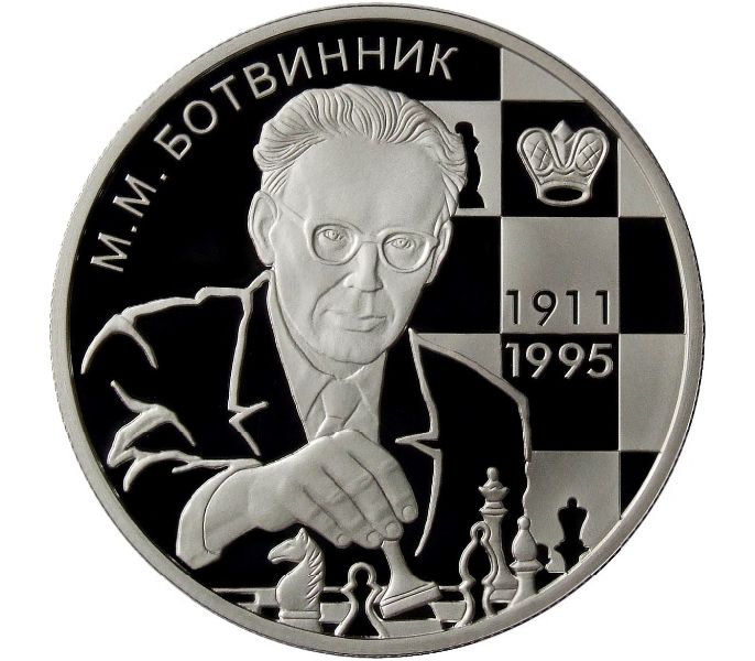 Монета посвящена 100-летию со дня рождения Михаила Моисеевича Ботвинника — выдающегося советского шахматиста, первого советского чемпиона мира по шахматам.