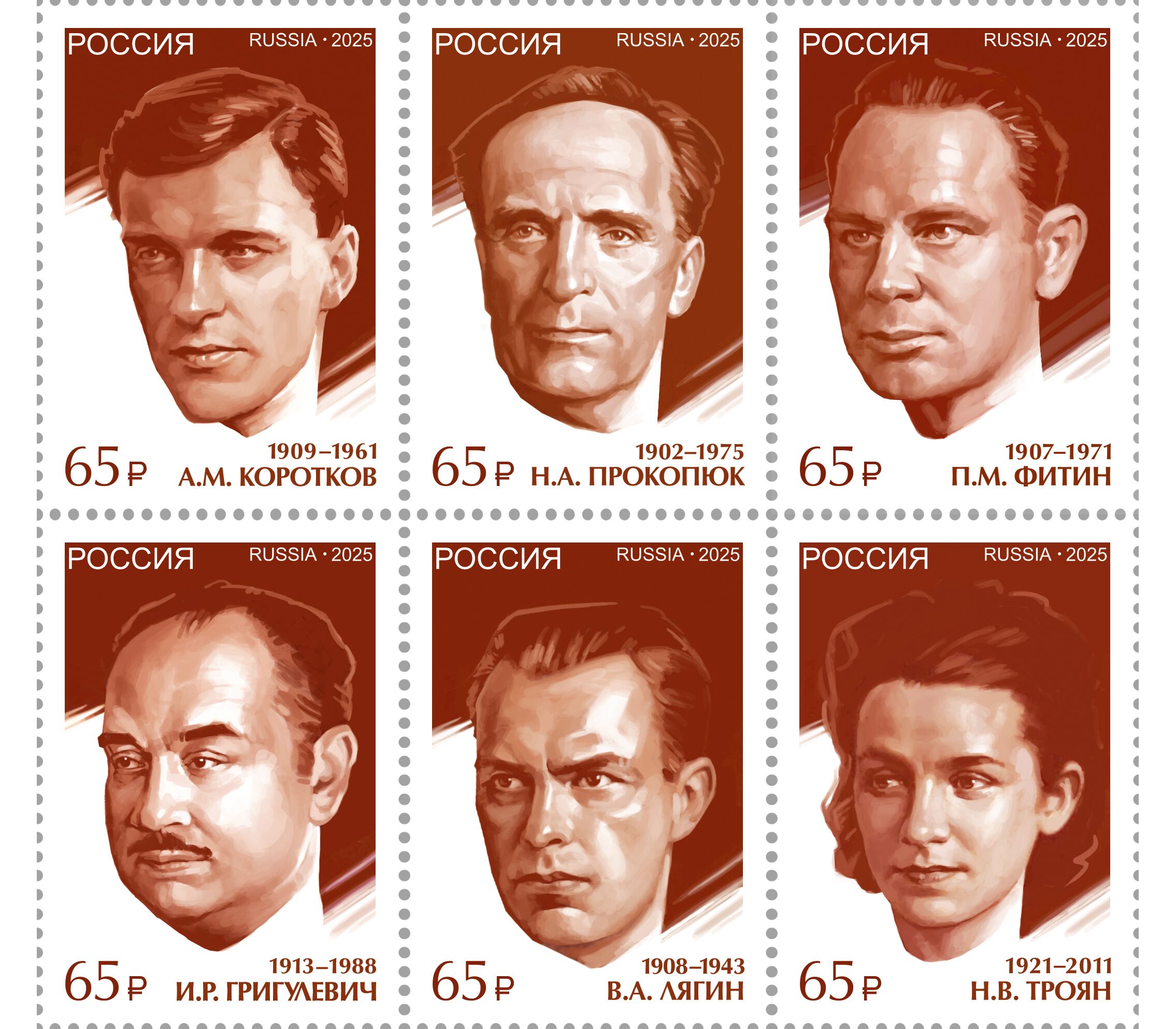6 почтовых марок «Герои — разведчики. И.Р. Григулевич, А.М. Коротков, В.А. Лягин, Н.А. Прокопюк, Н.В. Троян, П.М. Фитин» 2025