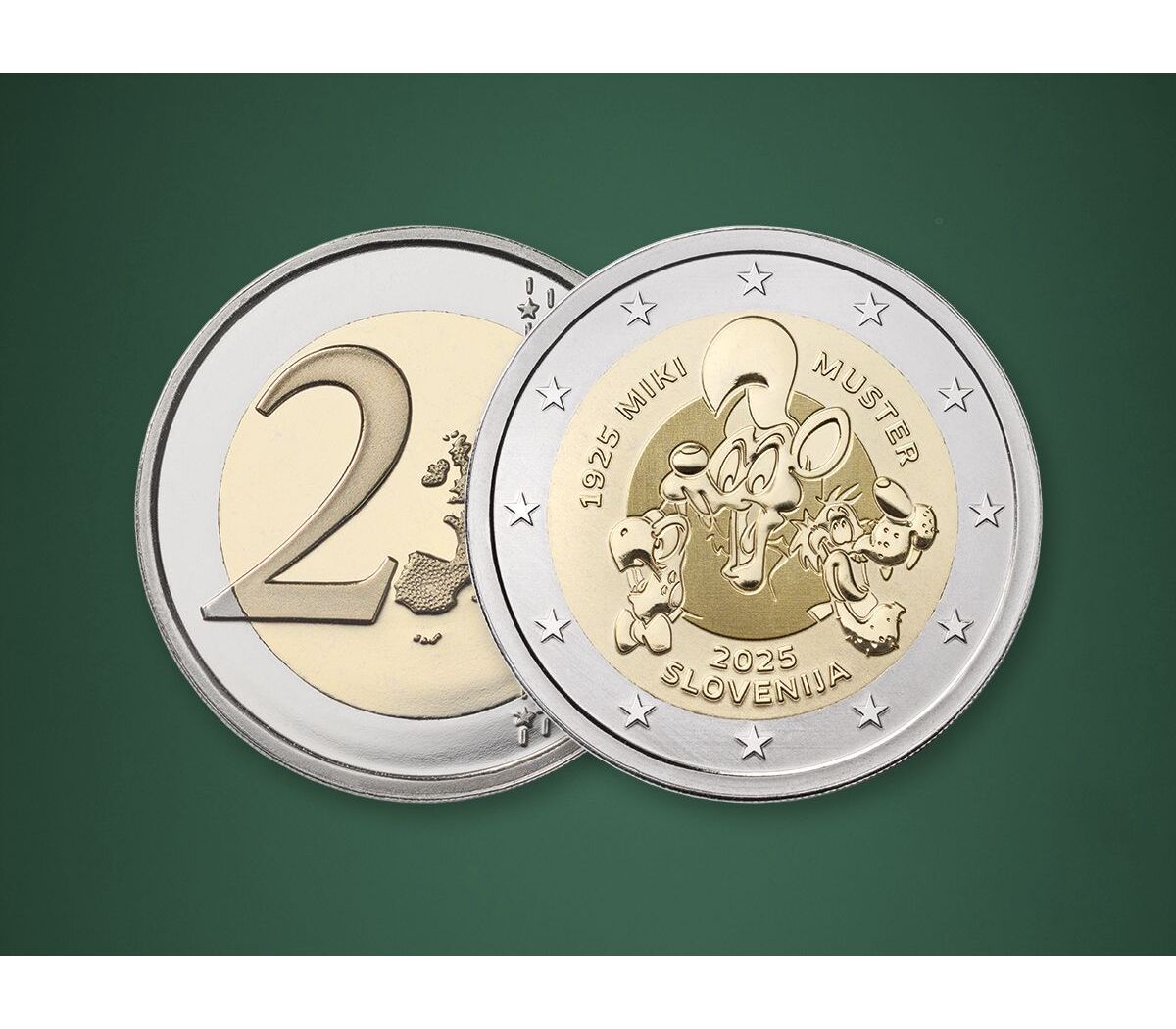 Монета 2 евро 2025 «100 лет со дня рождения словенского мультипликатора и иллюстратора Мики Мустера» Словения
