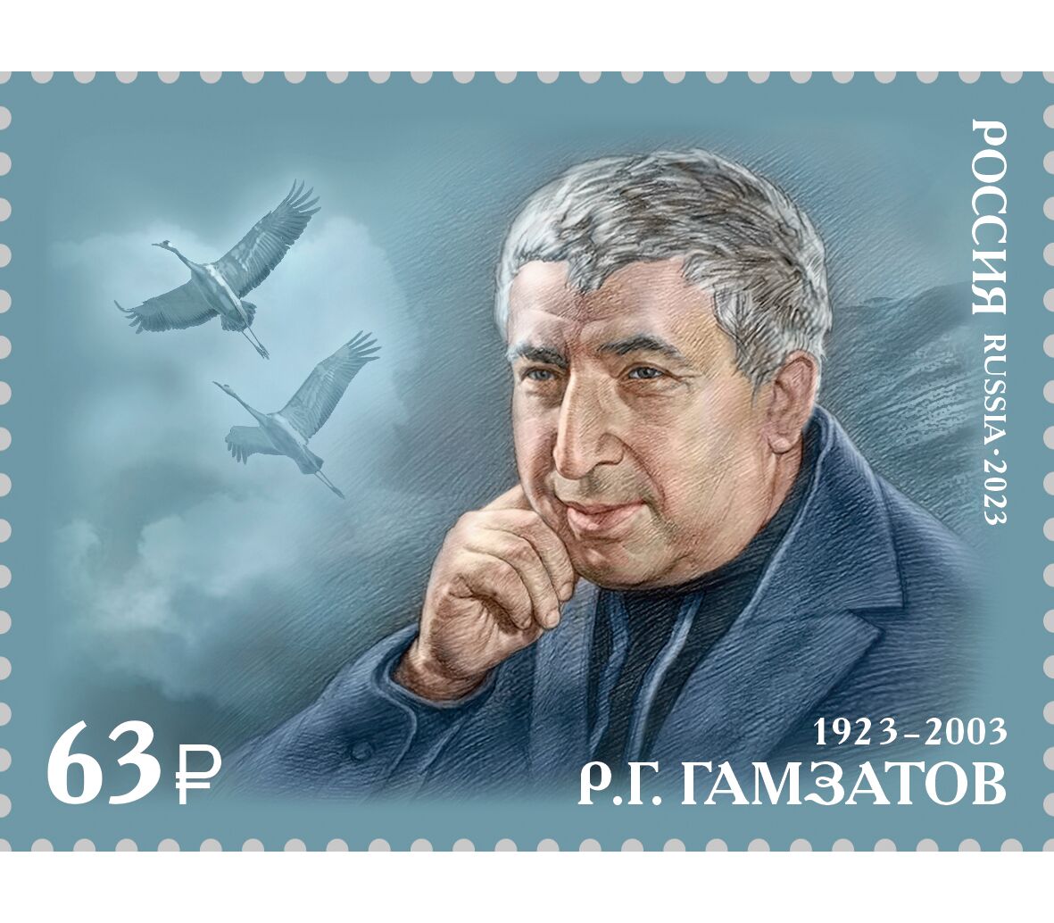 Почтовая марка «100 лет со дня рождения Р.Г. Гамзатова, поэта» 2023
