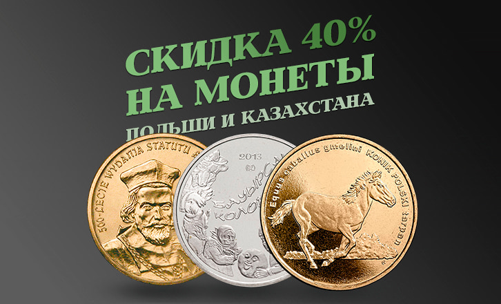 Только 7 дней — скидка 40% на все монеты Казахстана и Польши. Без ограничений по количеству для покупателей. Акция действует, пока товар есть в наличии.
