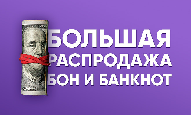 Сотни банкнот со скидкой до минус 60% только 7 дней. В акции участвуют как копии банкнот, так и подлинные банкноты. Обращайте внимание на название товара.